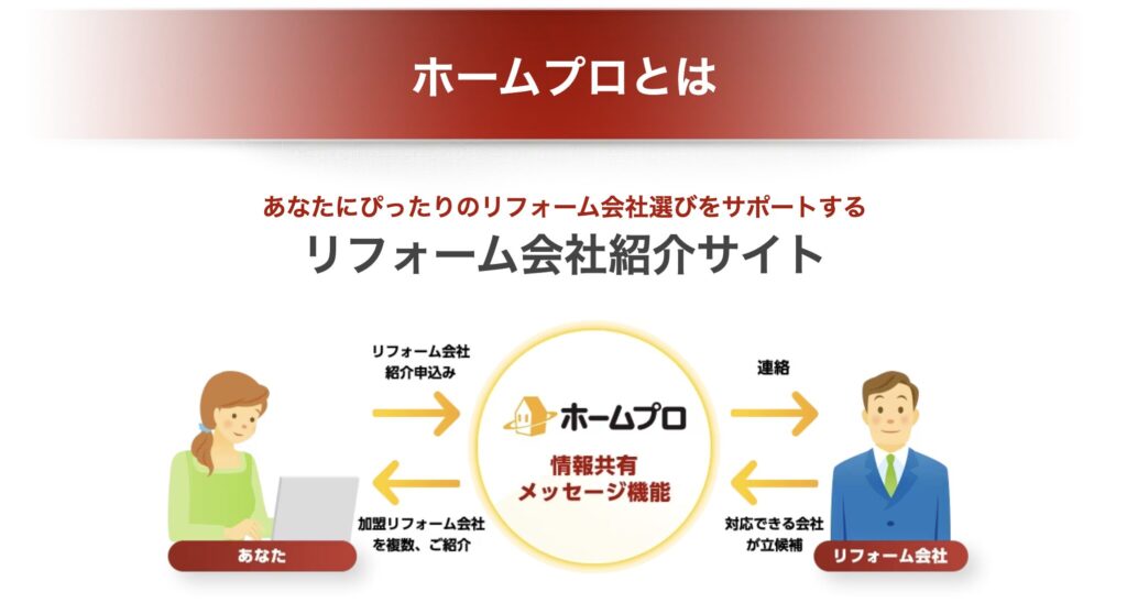 「自分で探すのが面倒」という人は、ホームプロなどのリフォーム会社紹介サービスを活用するのもおすすめです!>>ホームプロ公式サイトはこちら