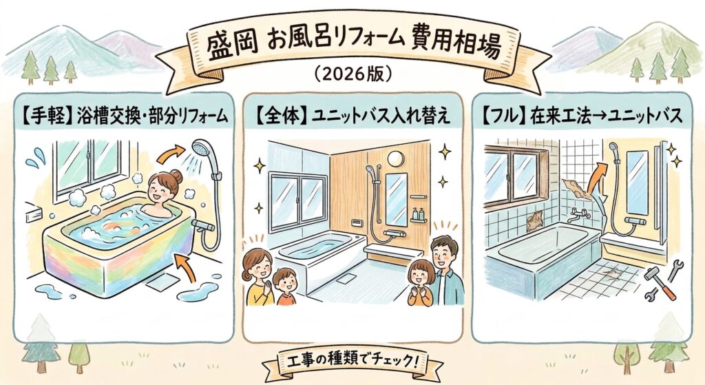 【盛岡】お風呂リフォームの費用相場は?工事の種類別に価格を徹底解説【2026年最新版】