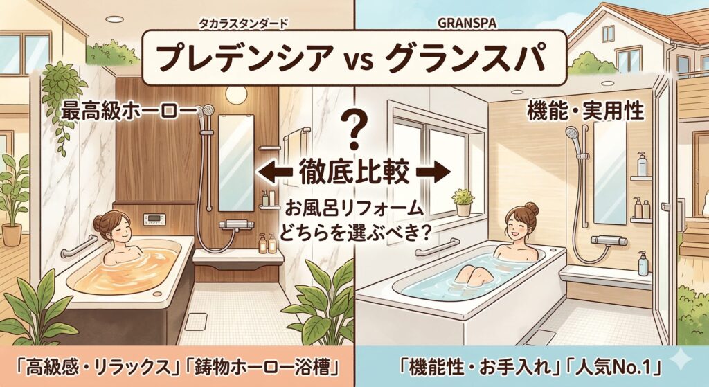 プレデンシアとグランスパの違いを徹底比較|タカラスタンダードお風呂リフォームはどちらを選ぶべき?