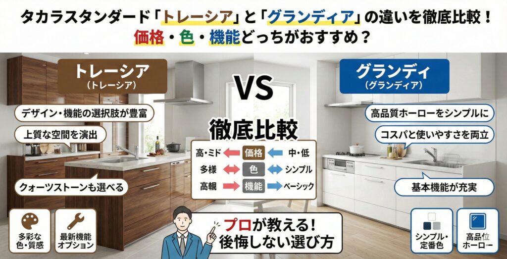 タカラスタンダード「トレーシア」と「グランディア」の違いを徹底比較!価格・色・機能どっちがおすすめ?