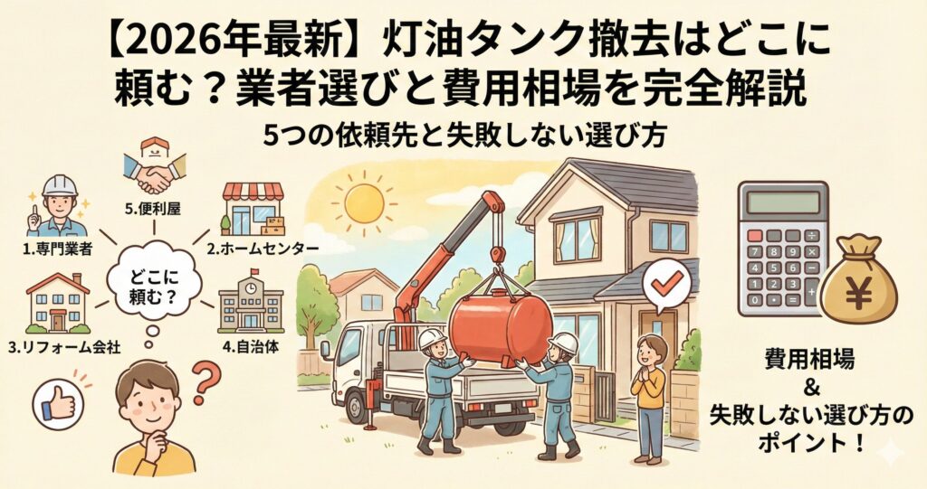 【2026年最新】灯油タンク撤去はどこに頼む?業者選びと費用相場を完全解説|5つの依頼先と失敗しない選び方