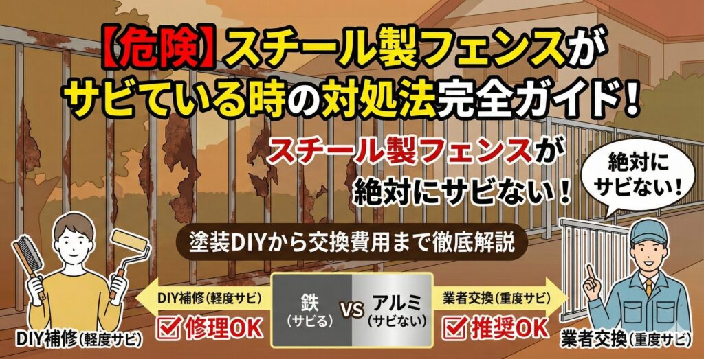 【危険】スチール製フェンスがサビている時の対処法完全ガイド!塗装DIYから交換費用まで徹底解説
