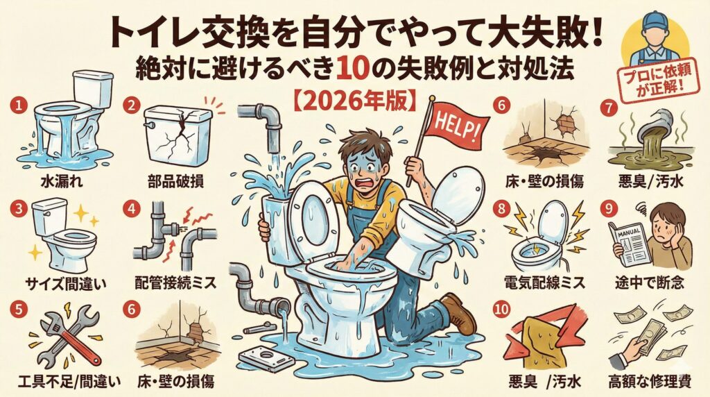 トイレ交換を自分でやって大失敗!絶対に避けるべき10の失敗例と対処法【2026年版】