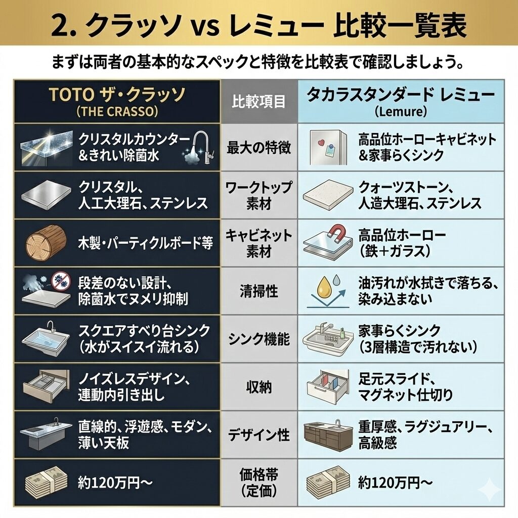 「せっかくのリフォーム、最高級のキッチンを入れたいけれど、TOTOの『ザ・クラッソ』とタカラスタンダードの『レミュー』、どちらにするか決められない……」そんな悩みを抱えていませんか?