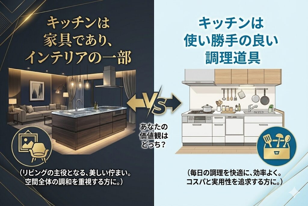 キッチンをLDKの「顔」にするか、実用的な「道具」とするか。ここで選択が分かれます。