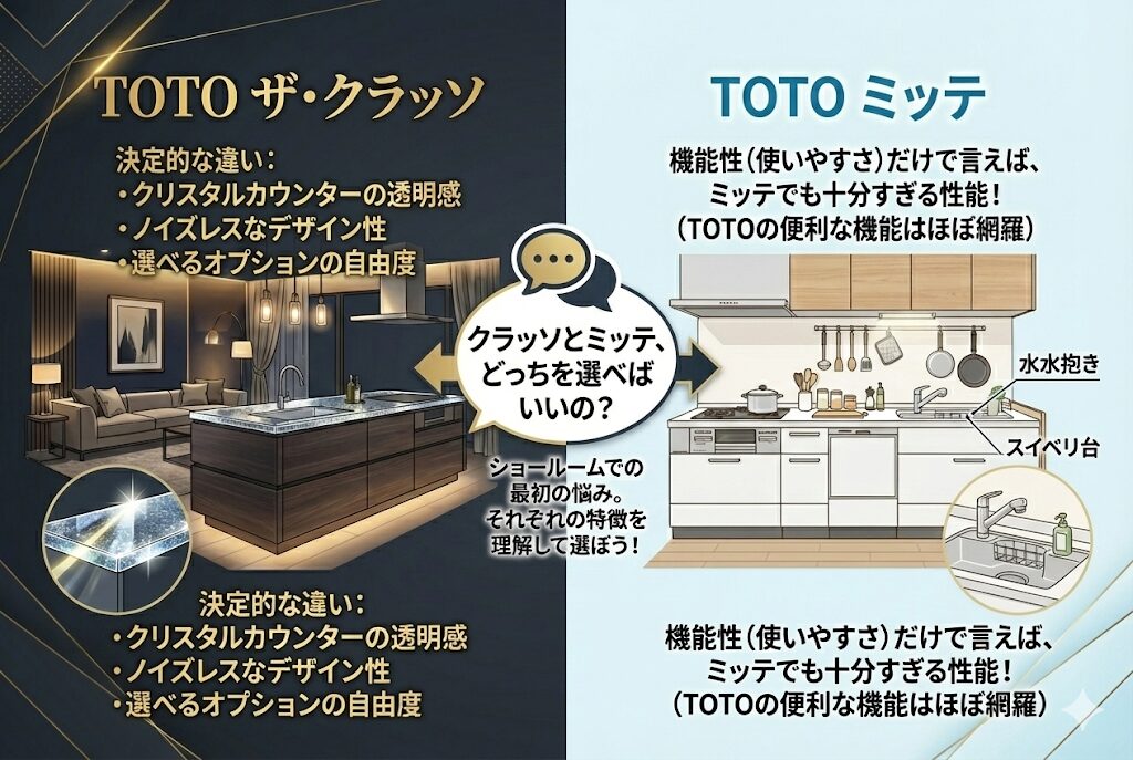 「TOTOのキッチンにしたいけれど、クラッソとミッテ、どっちを選べばいいの?」