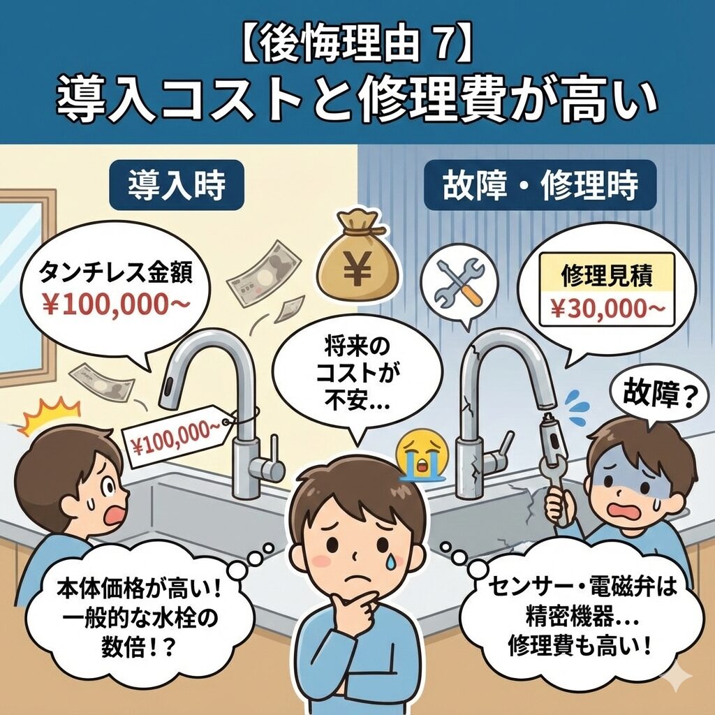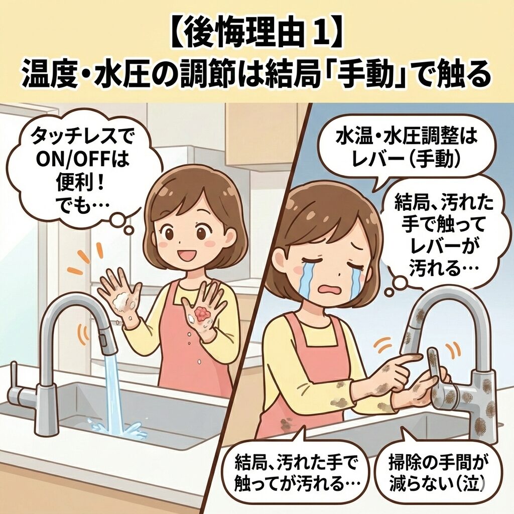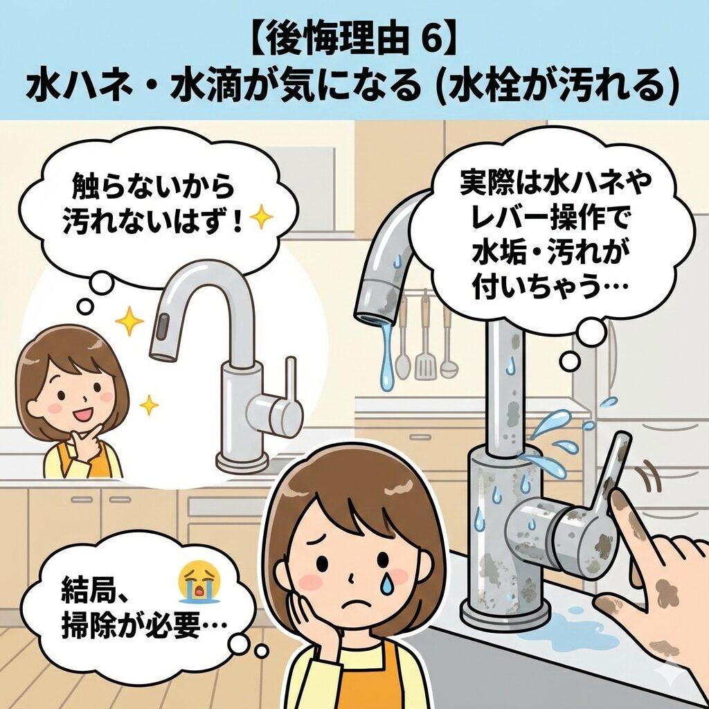 導入後に「失敗した」「前の水栓で良かった」と感じる、具体的な後悔ポイントを深掘りし、それぞれの回避策を提示します。