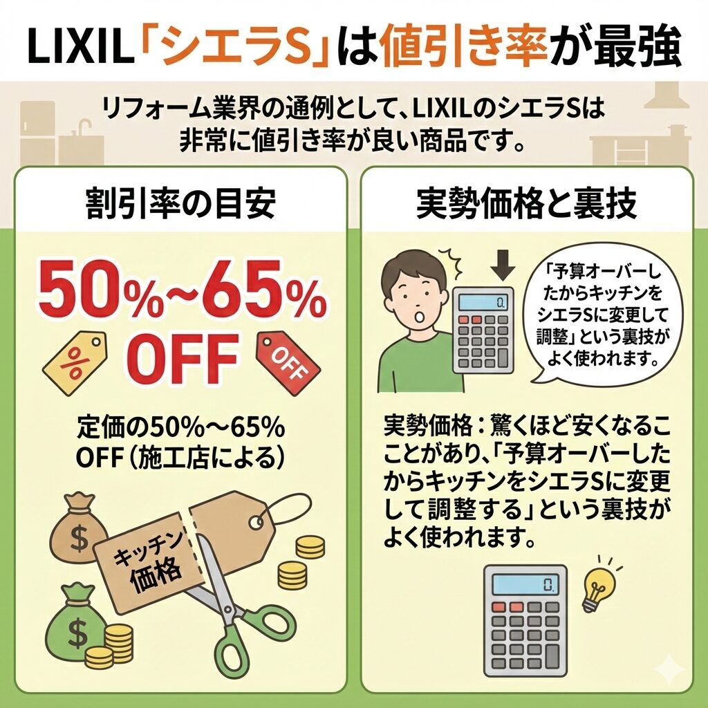 リフォーム業界の通例として、LIXILのシエラSは非常に値引き率が良い商品です。