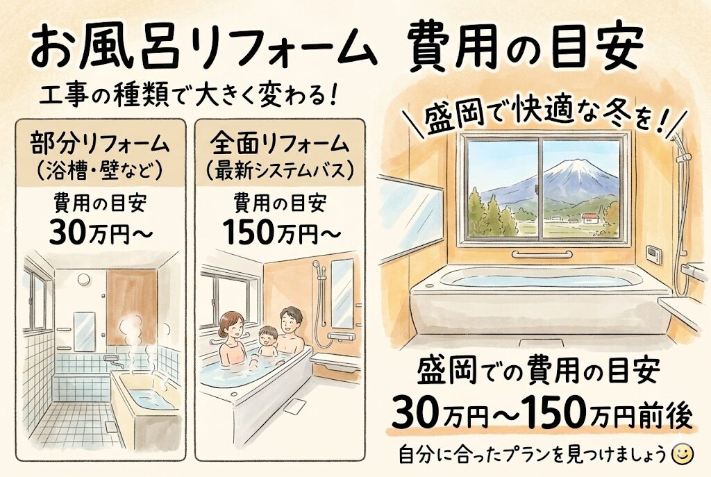 【盛岡】お風呂リフォームの費用相場は?工事の種類別に価格を徹底解説【2026年最新版】