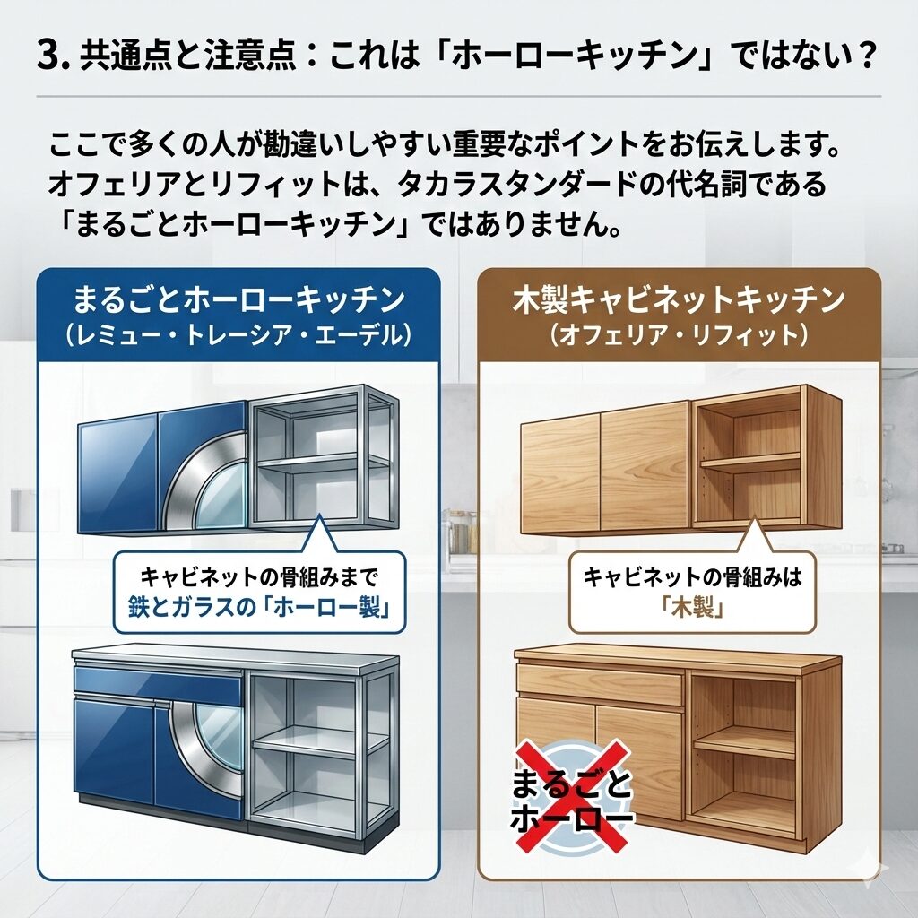 オフェリアとリフィットは、タカラスタンダードの代名詞である「まるごとホーローキッチン」ではありません。