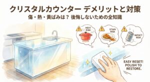 最も多い後悔の声が、キッチンの顔である「天板」です。 パナソニックの最上位「Lクラス」最大の特徴は、有機ガラス系素材の「グラリオカウンター」などが選べる点。天然石のような深みと透明感があり、熱や傷にも圧倒的に強いのが特徴です。