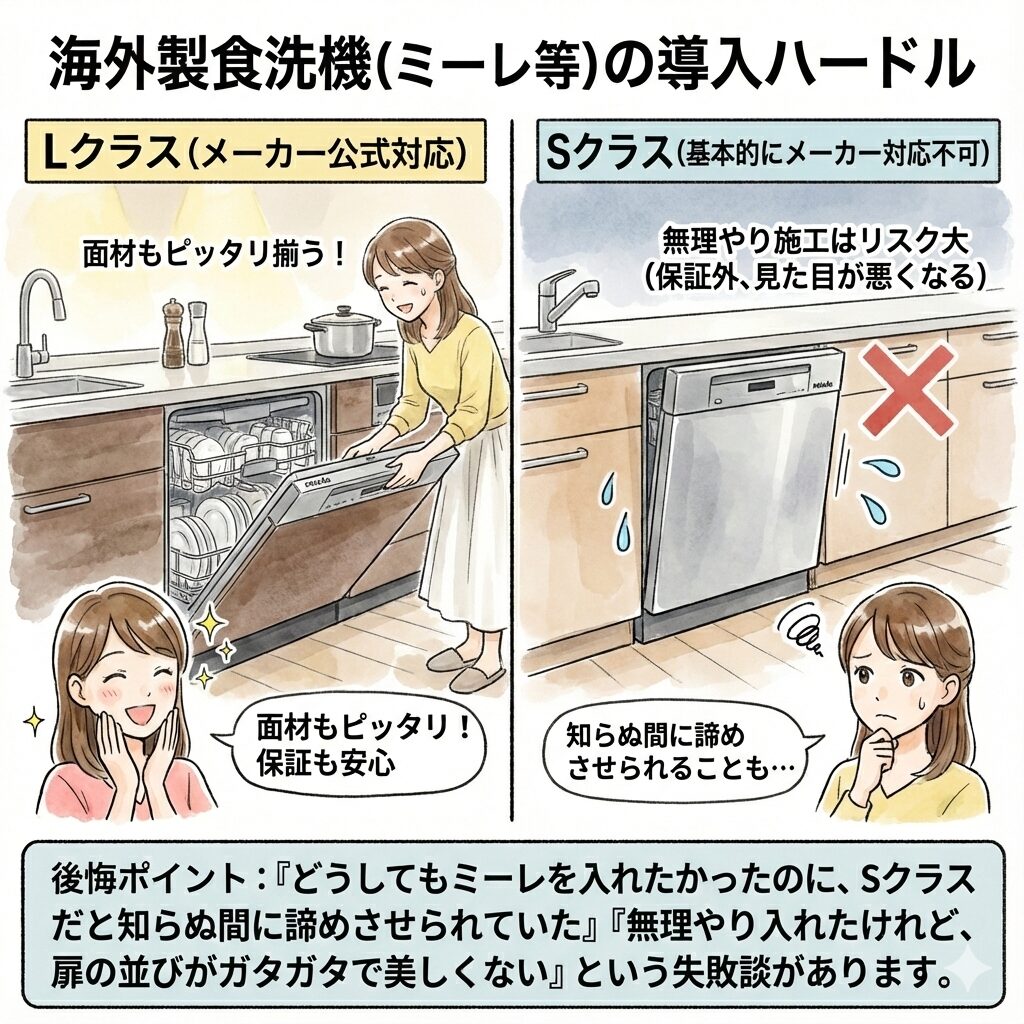 - ミーレを入れたいなら、迷わずLクラス(または他メーカー)へ。