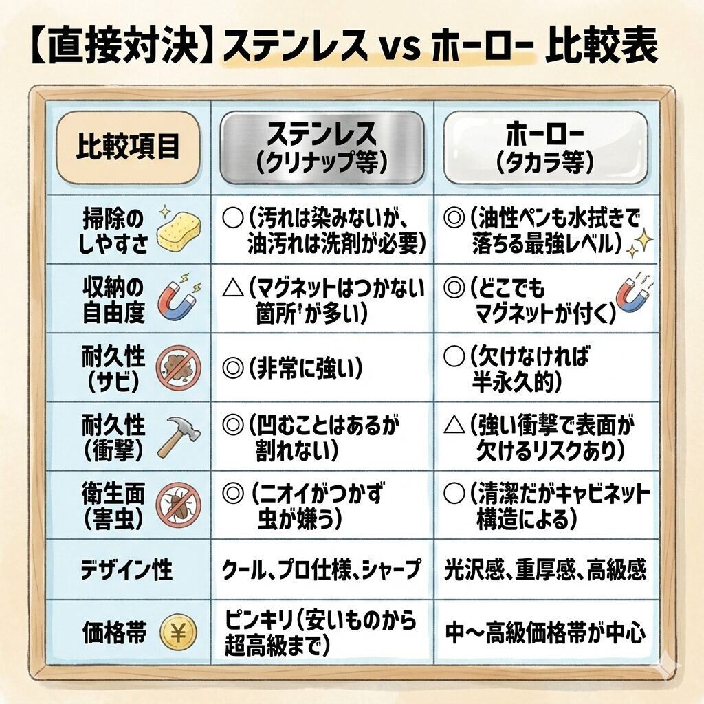 3. 【直接対決】ステンレス vs ホーロー 比較表