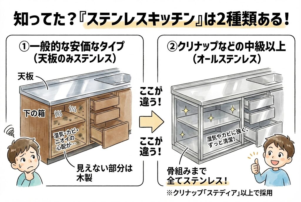 「ステンレスキッチン」と言っても、実は2種類あることをご存知ですか?