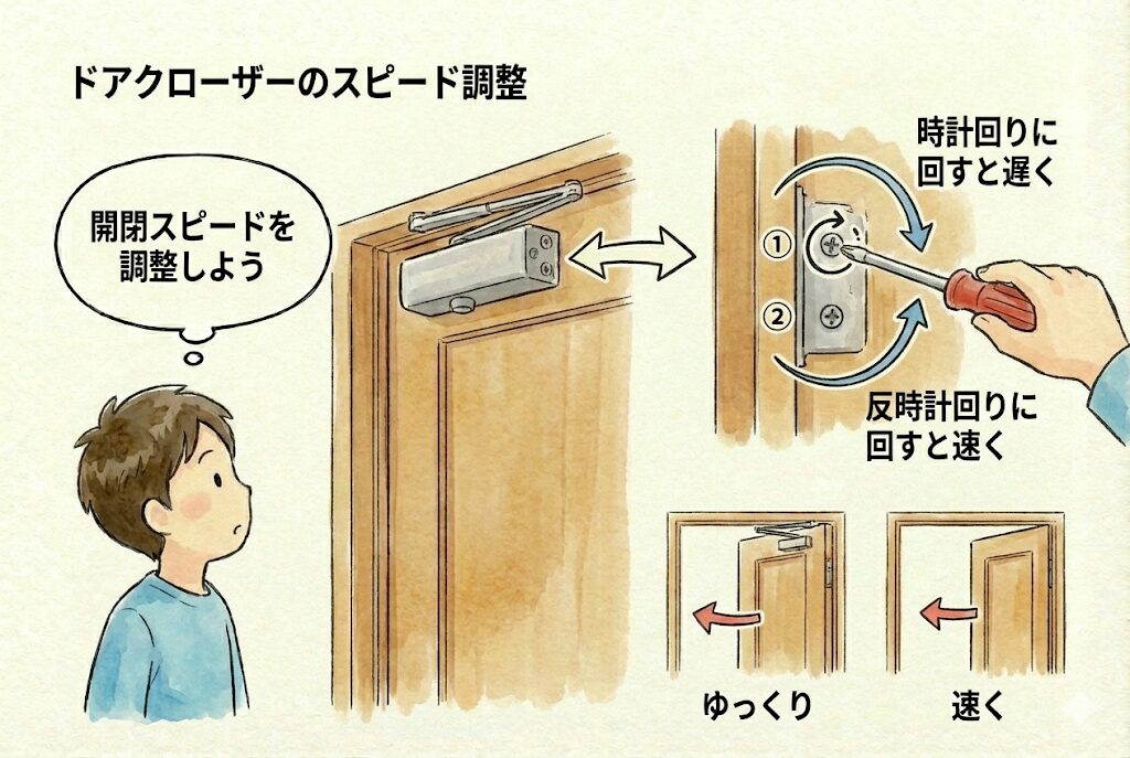 ドアクローザーのスピード調整