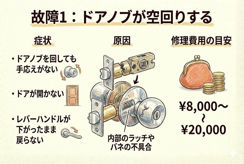 故障1:ドアノブが空回りする