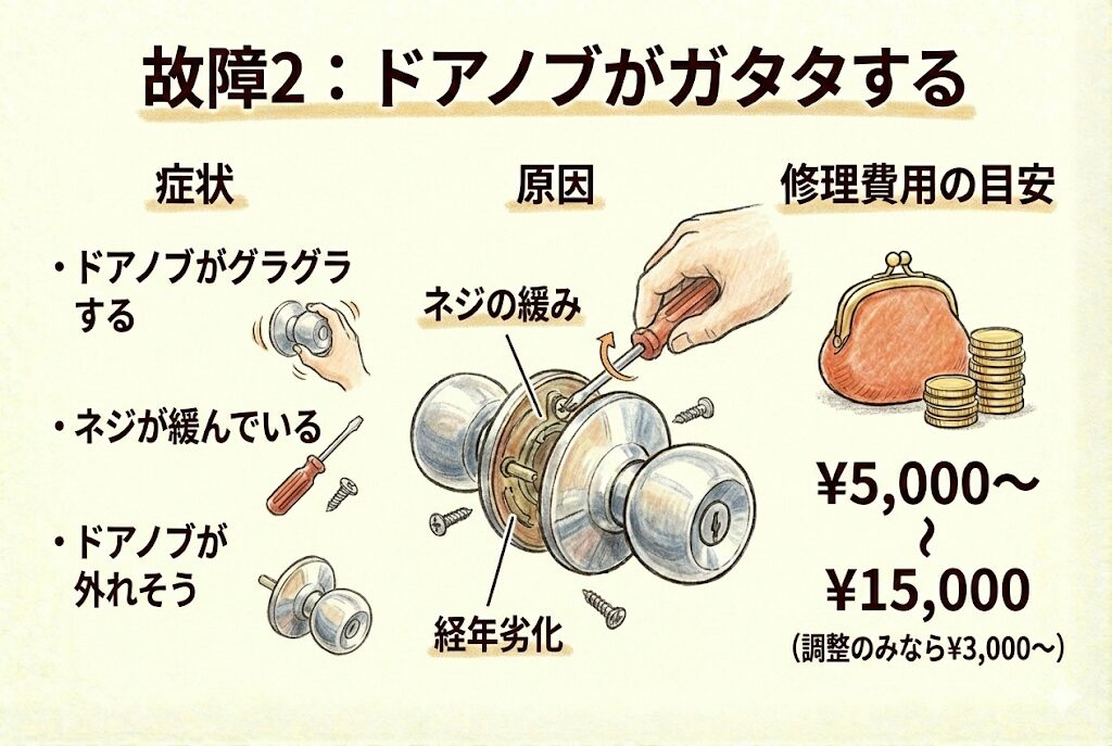 故障2:ドアノブがガタガタする
