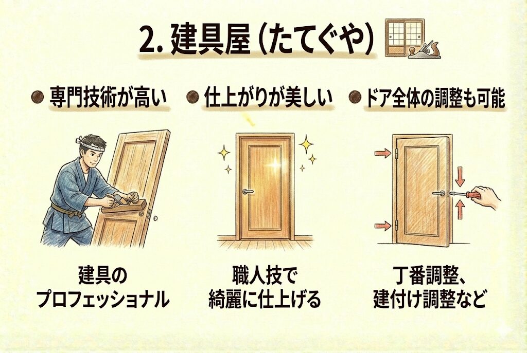 2. 建具屋:専門技術が高い、仕上がりが美しい