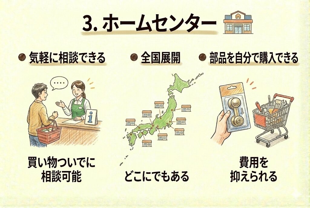 3. ホームセンター:気軽に相談できる、中間マージンあり