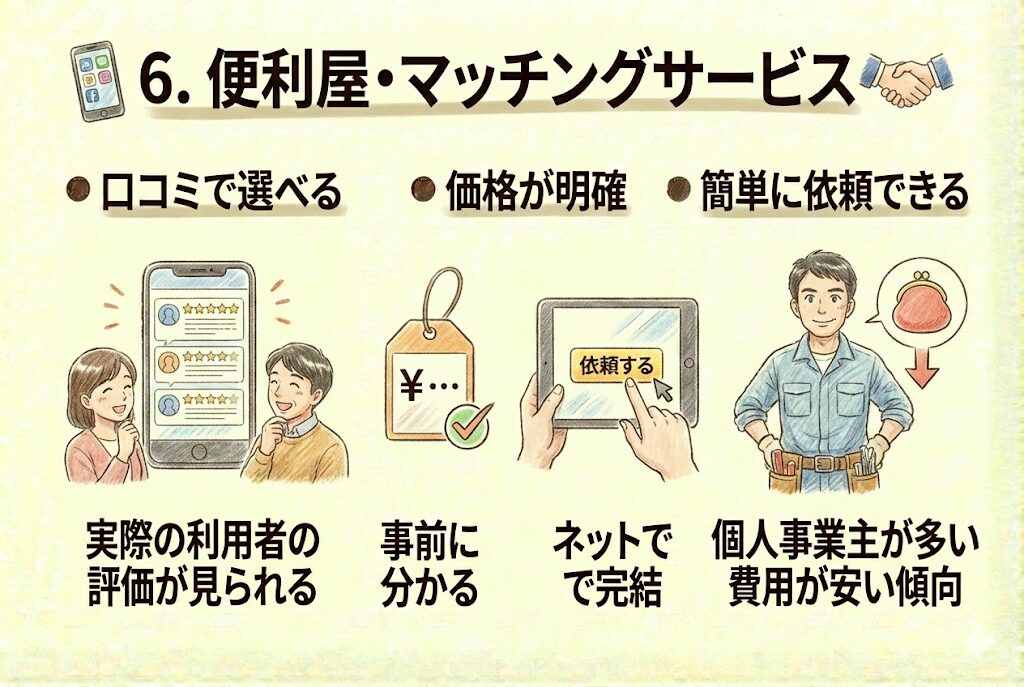 6. 便利屋・マッチングサービス:口コミで選べる、価格明確
