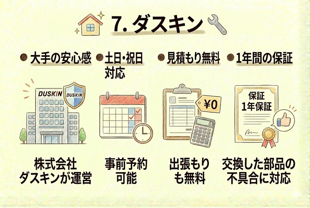 7. ダスキン:大手の安心感、1年保証