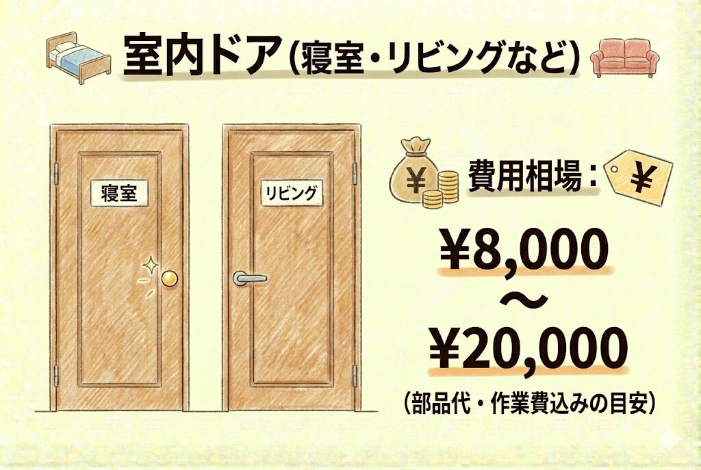 • 室内ドアノブ交換:8,000円〜15,000円