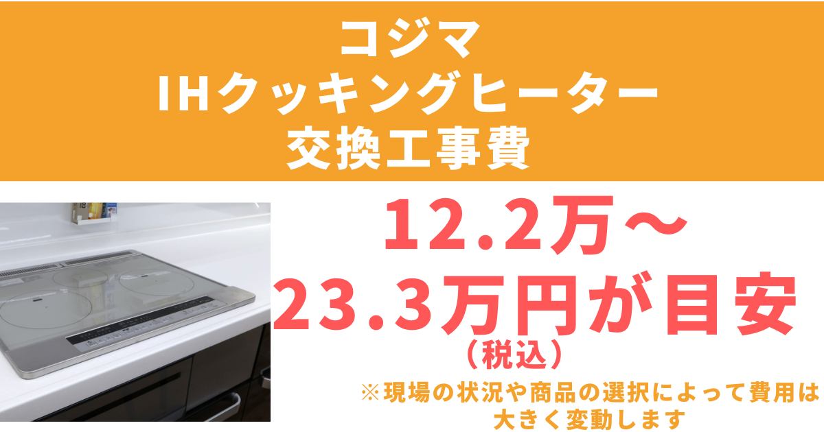 コジマのIHクッキングヒーター交換費用は、12.2万〜23.3万円が目安です。(2025年10月時点、IHからIHに交換する場合)