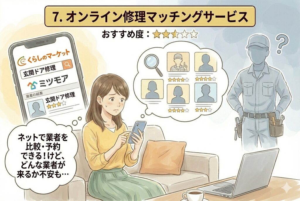 この記事では、玄関ドア修理を依頼できる7つの業者、それぞれの費用相場、メリット・デメリット、症状別のおすすめ依頼先、失敗しない業者の選び方まで徹底解説します。