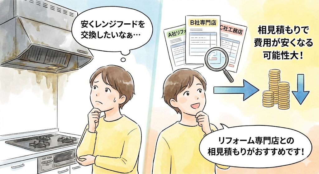 「もっと安くレンジフードを交換したい!」という方は、相見積もりを検討するのがおすすめです。