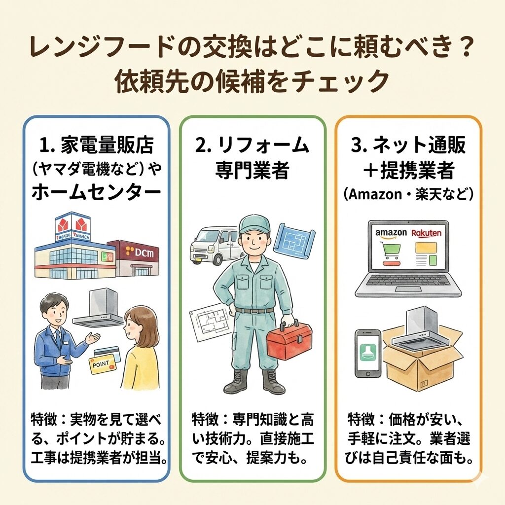 レンジフードの交換はどこに頼むべき?依頼先の候補をチェック