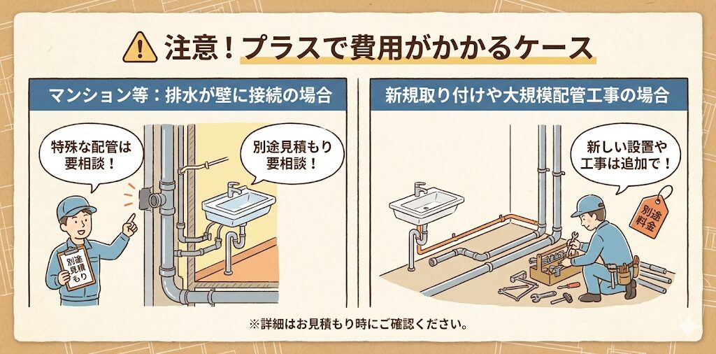 以下の場合の他、プラスで費用がかかる可能性もある点に注意しましょう。