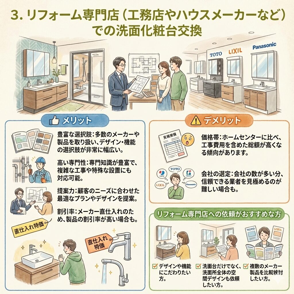 洗面化粧台の交換依頼先はどこがいい?主な選択肢と特徴まとめ