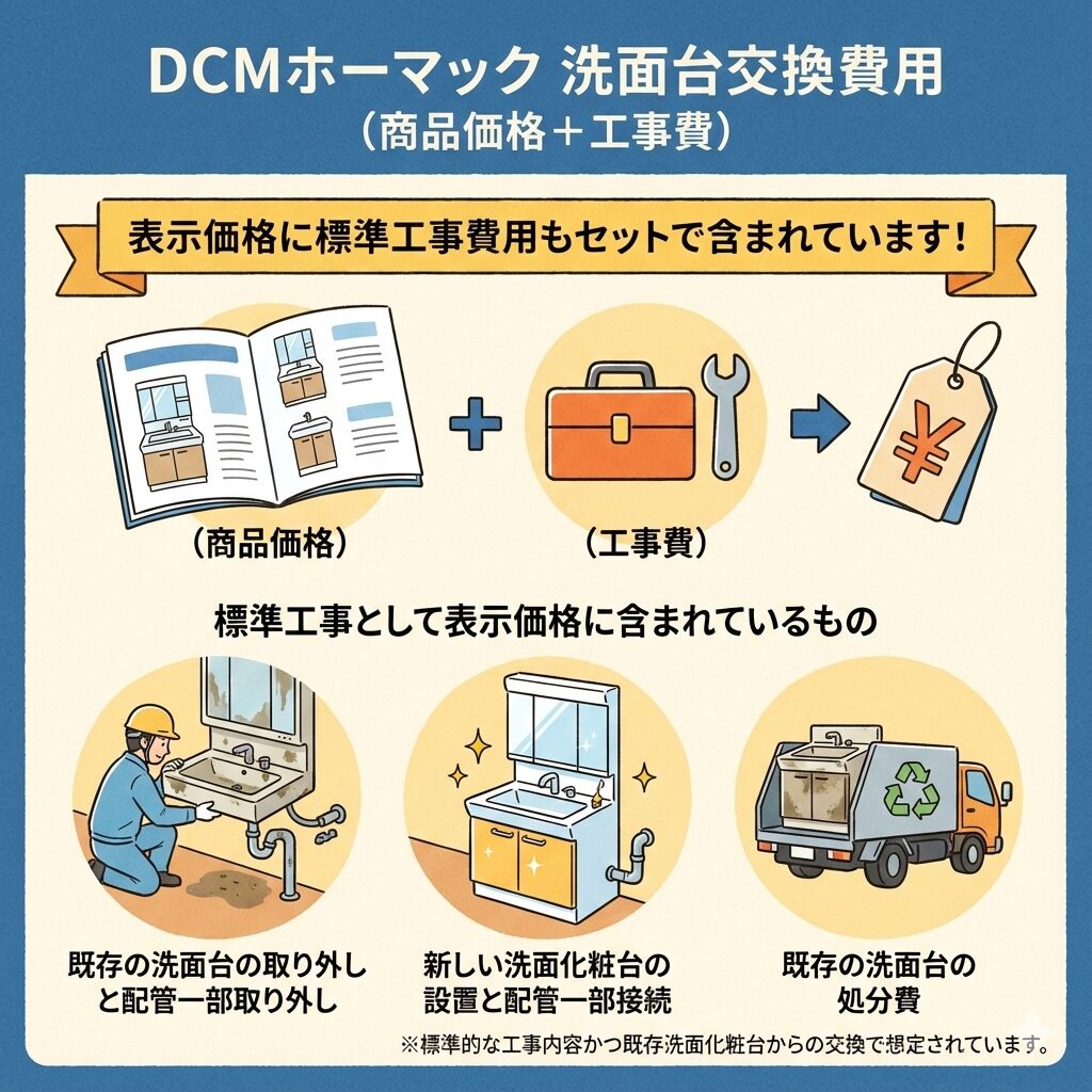 【2026年版】DCMホーマックの洗面台交換費用|工事費用編