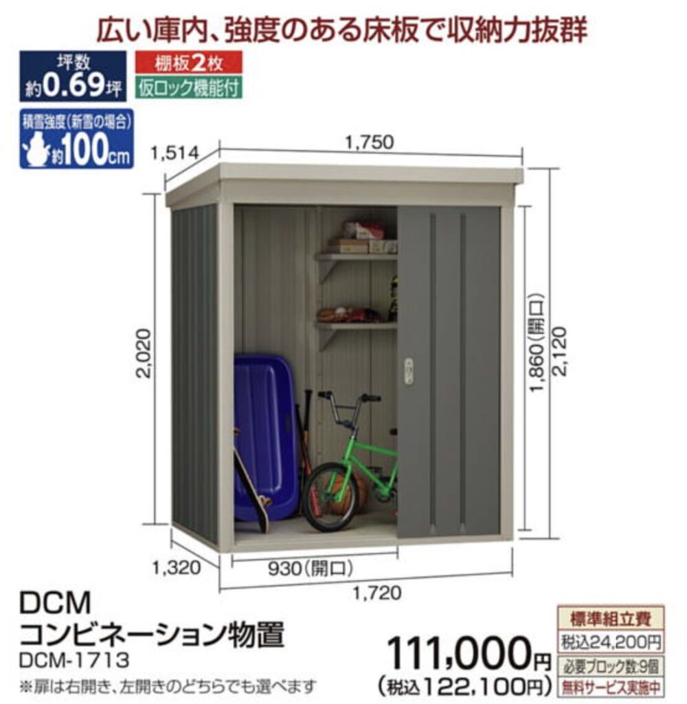 0.7坪クラスは「12〜19万円台(税込)」で販売されています。中でもイチオシの商品は、DCMブランドの以下の商品です。