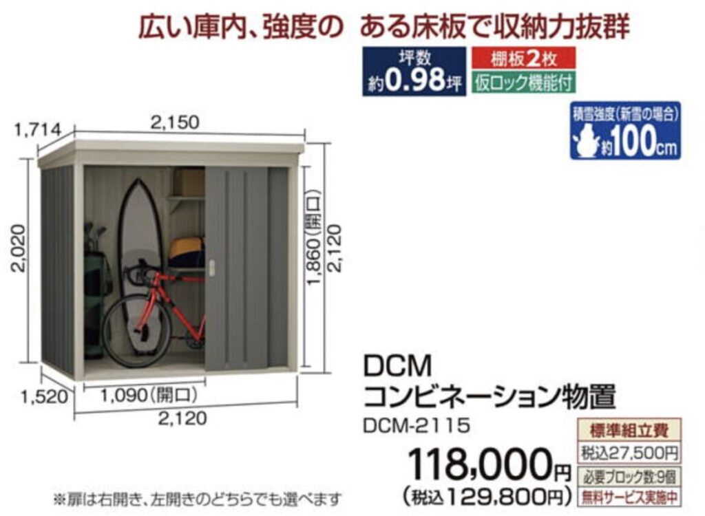 1.5坪クラスは「20〜30万円台(税込)」で販売されています。中でもイチオシの商品は、DCMの以下の商品です。