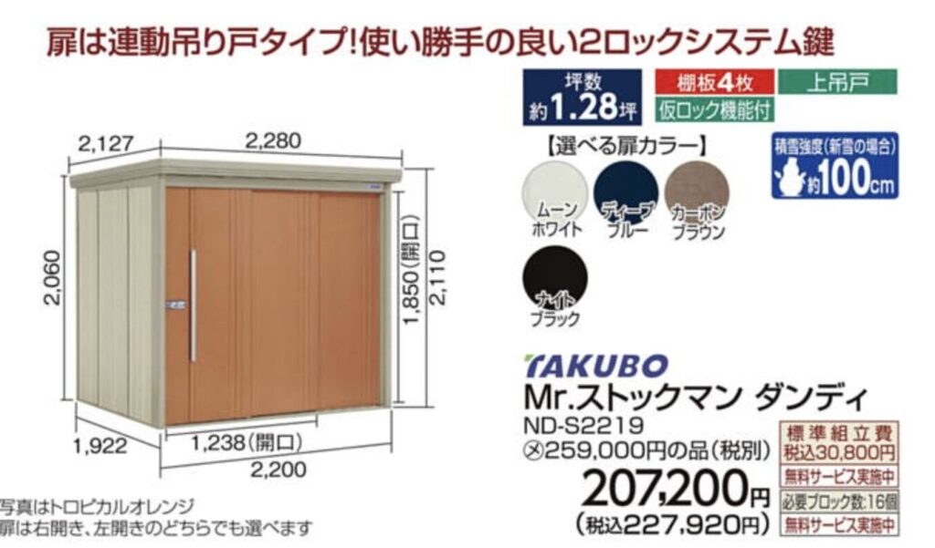 1.2坪クラスは「19〜27万円台(税込)」で販売されています。中でもイチオシの商品は、TAKUBOの以下の商品です。