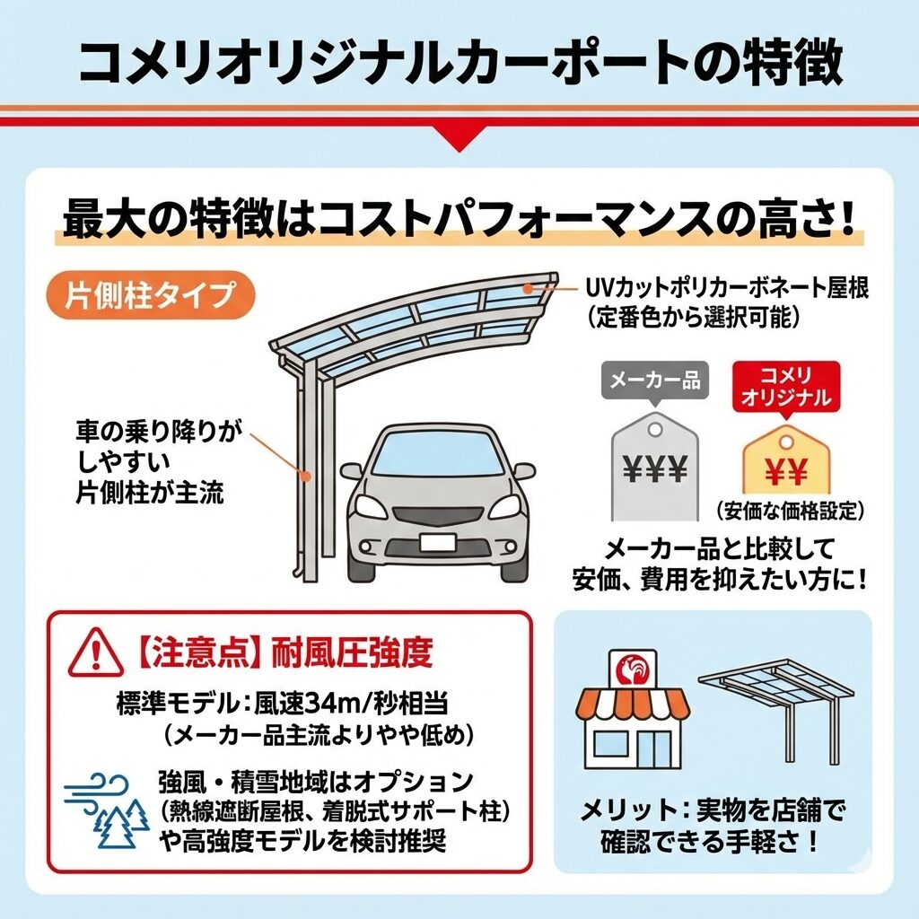 コメリのオリジナルカーポートの特徴