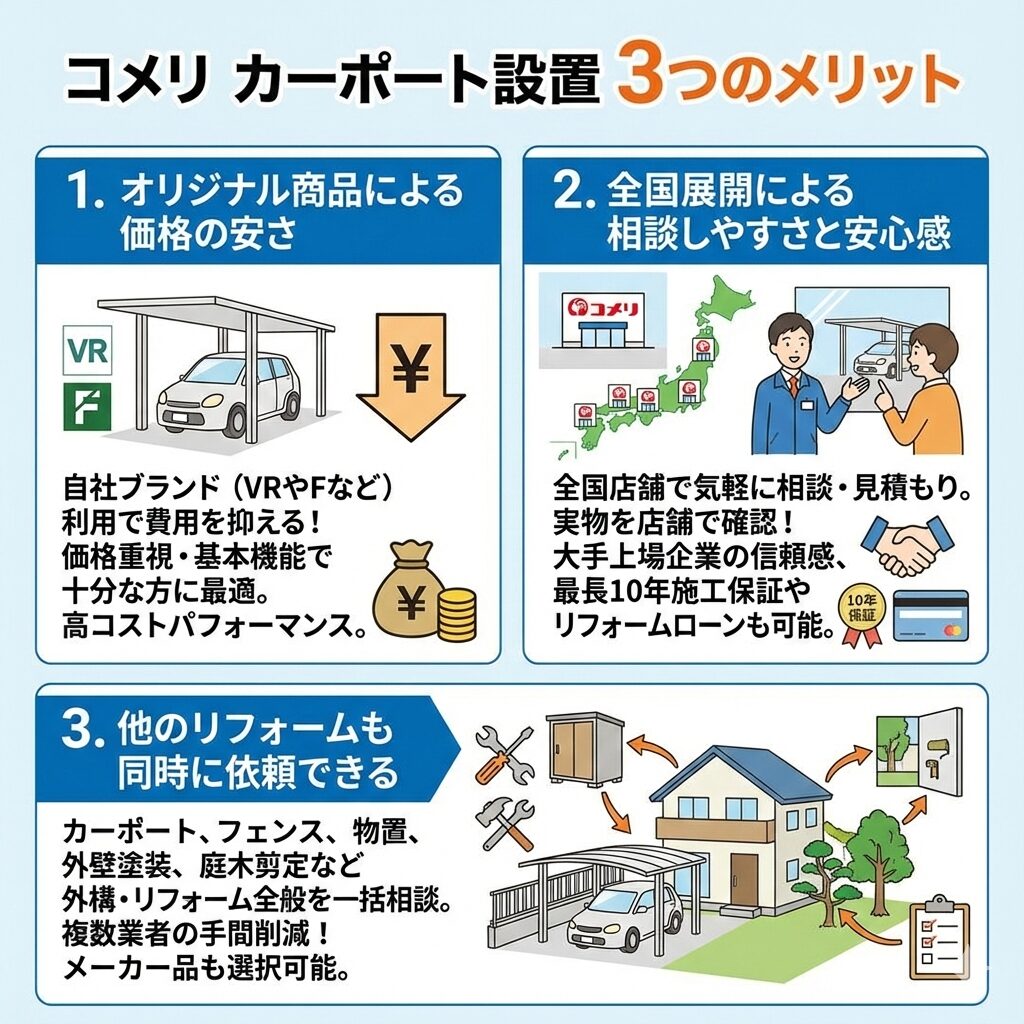 コメリにカーポート設置を依頼するメリット