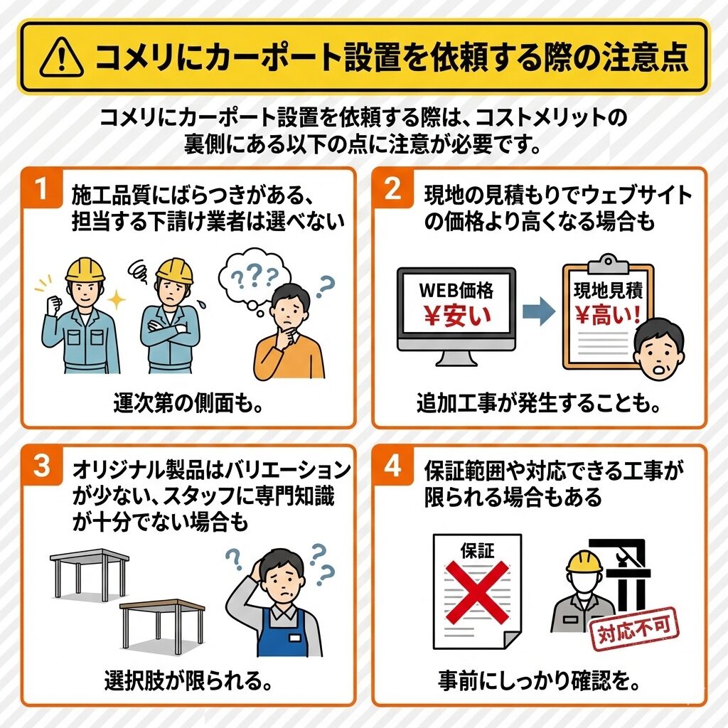 コメリにカーポート設置を依頼する際の注意点