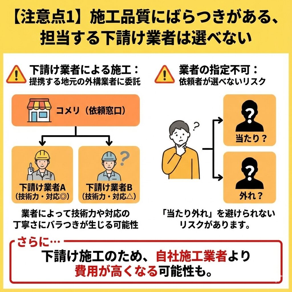 【注意点1】施工品質にばらつきがある、担当する下請け業者は選べない