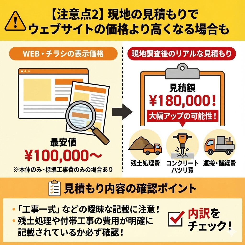 【注意点2】現地の見積もりでウェブサイトの価格より高くなる場合も