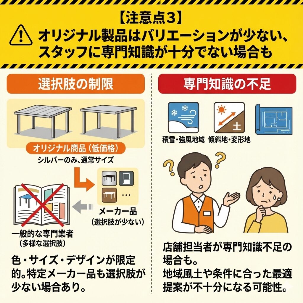 【注意点3】オリジナル製品はバリエーションが少ない、スタッフに専門知識が十分でない場合も