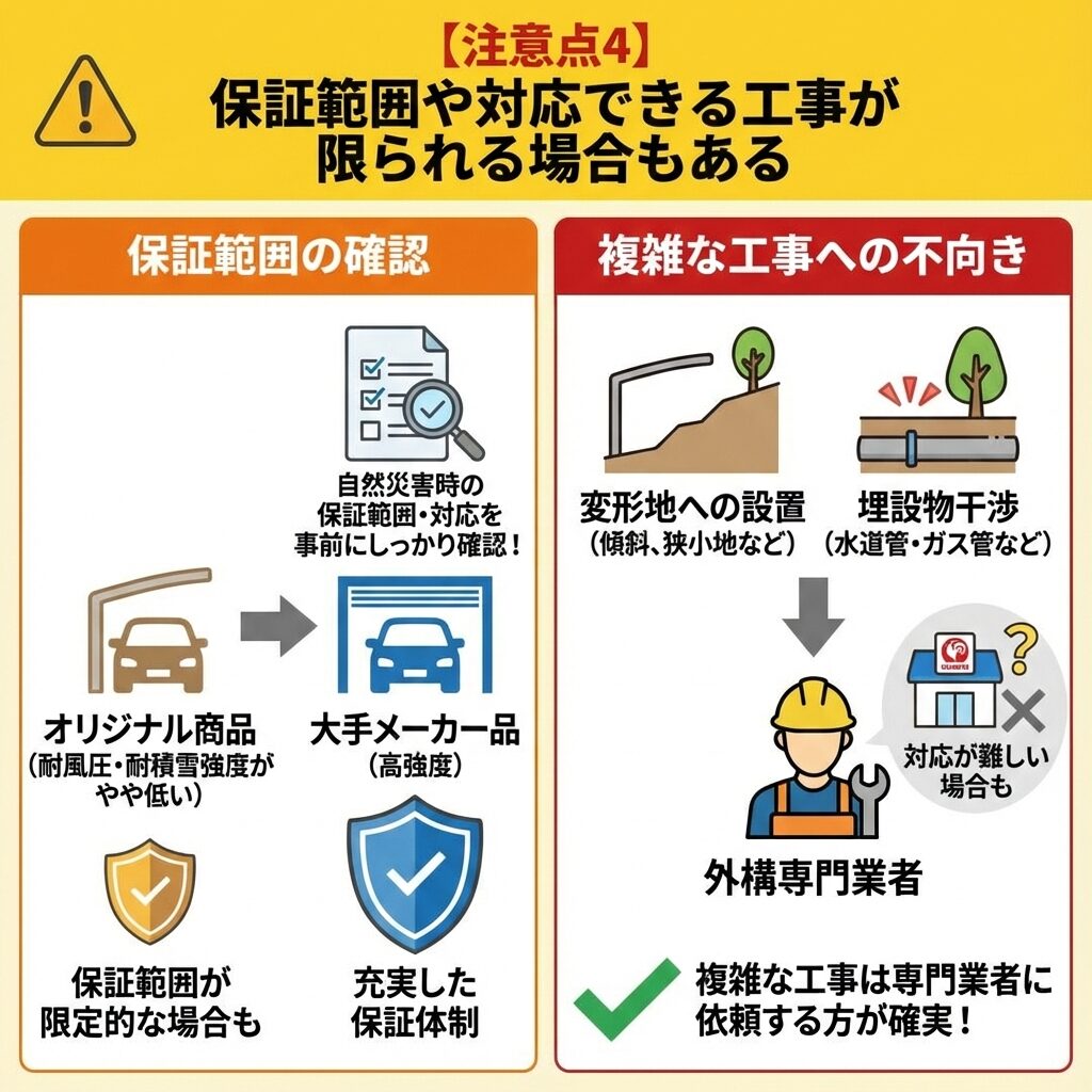 【注意点4】保証範囲や対応できる工事が限られる場合もある