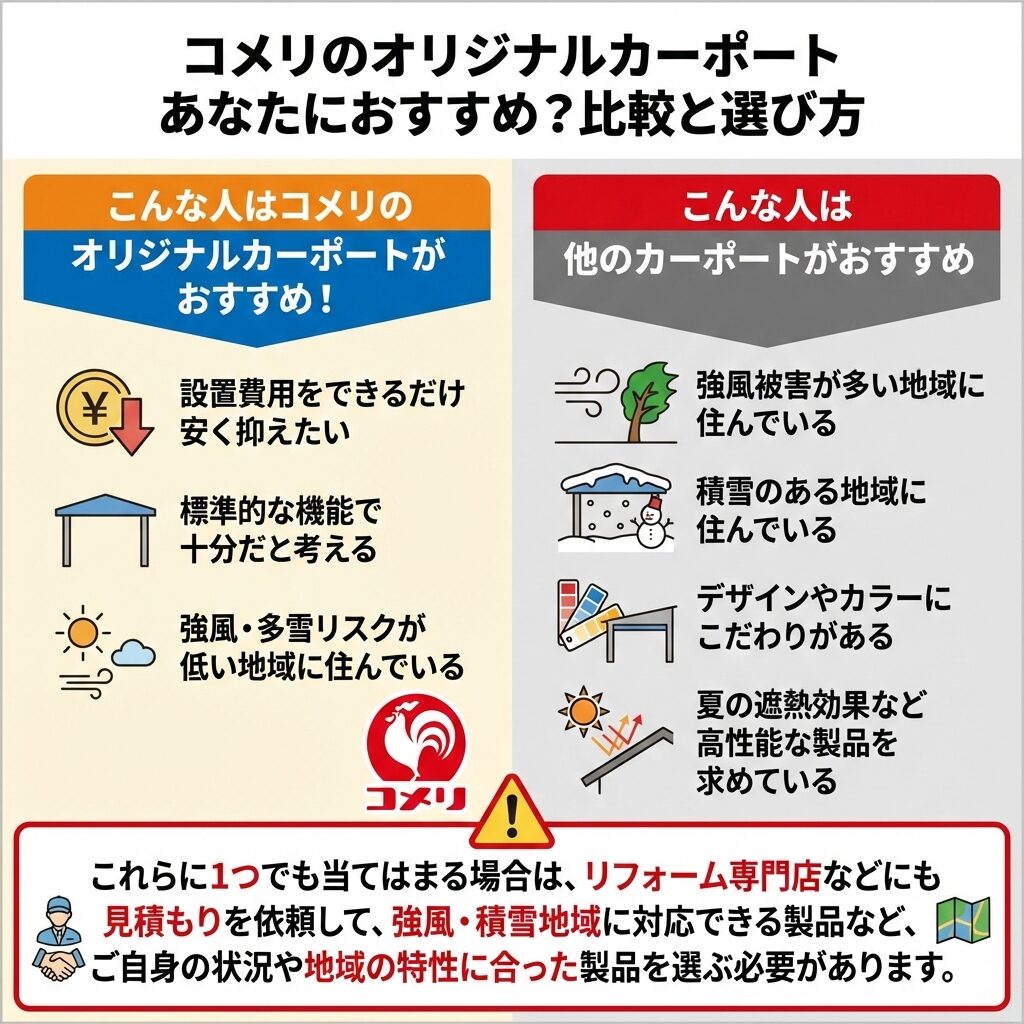 コメリのオリジナルカーポートがおすすめな人