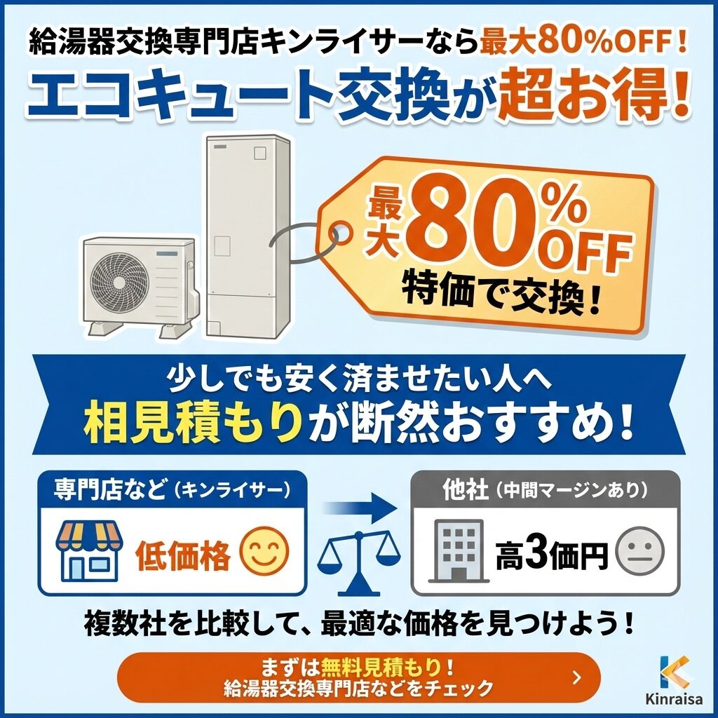 エコキュート交換はキンライサーがおすすめ!最大定価の80%オフでエコキュートを交換できる?