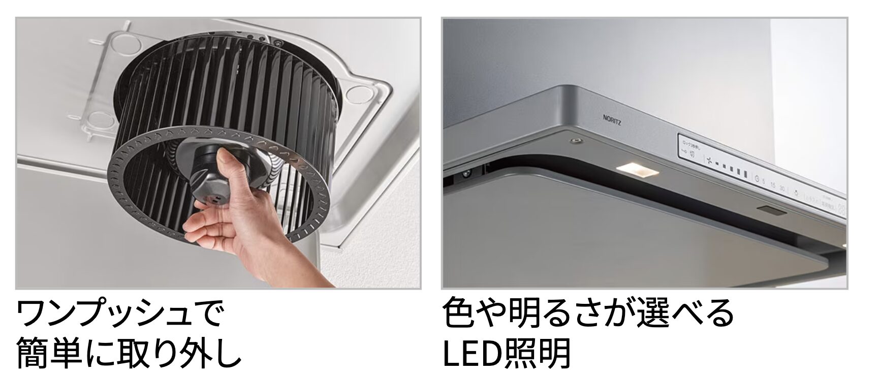 ノーリツのレンジフード「クララ」シリーズは、お手入れの簡便性を追求したスリム型モデルです。