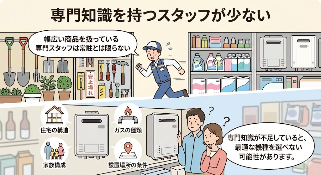 そのため、給湯器に特化した専門知識を持つスタッフが常駐しているとは限りません。