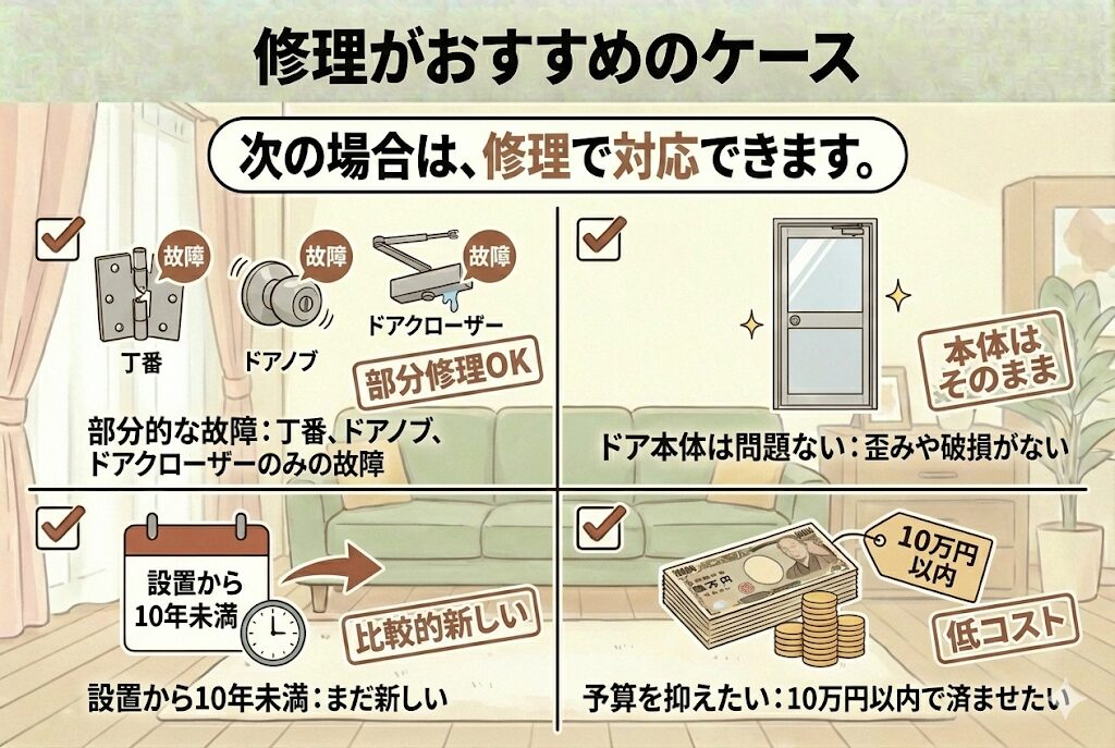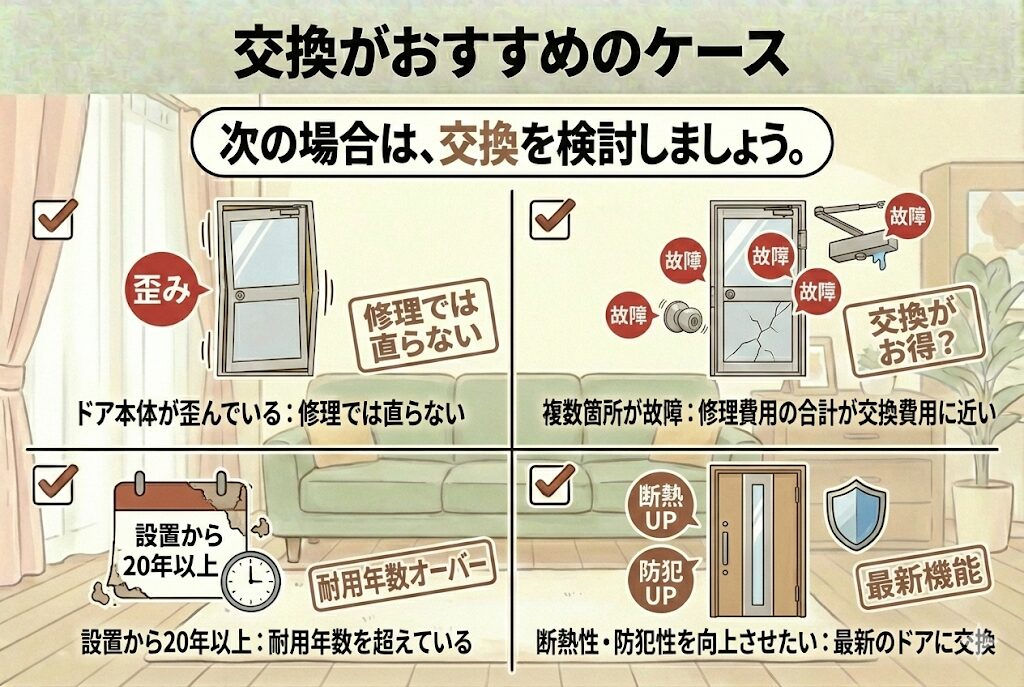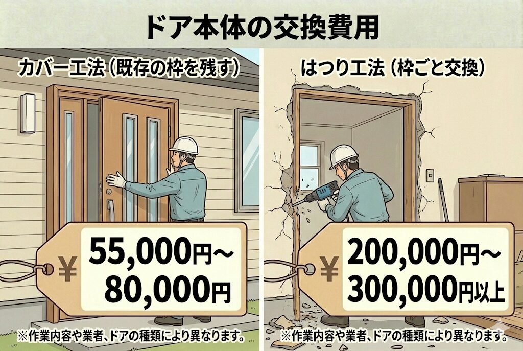 • → 2万円の差なら、新しいドアに交換した方が良い
