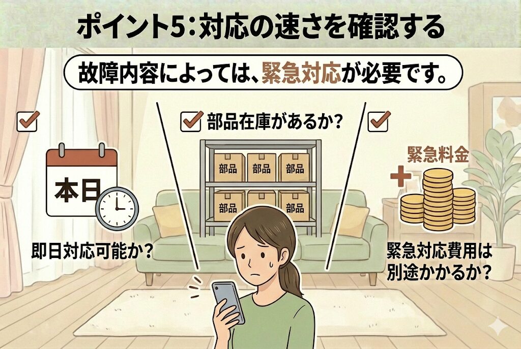 • 対応が早い:部品在庫が豊富で、即日修理も可能