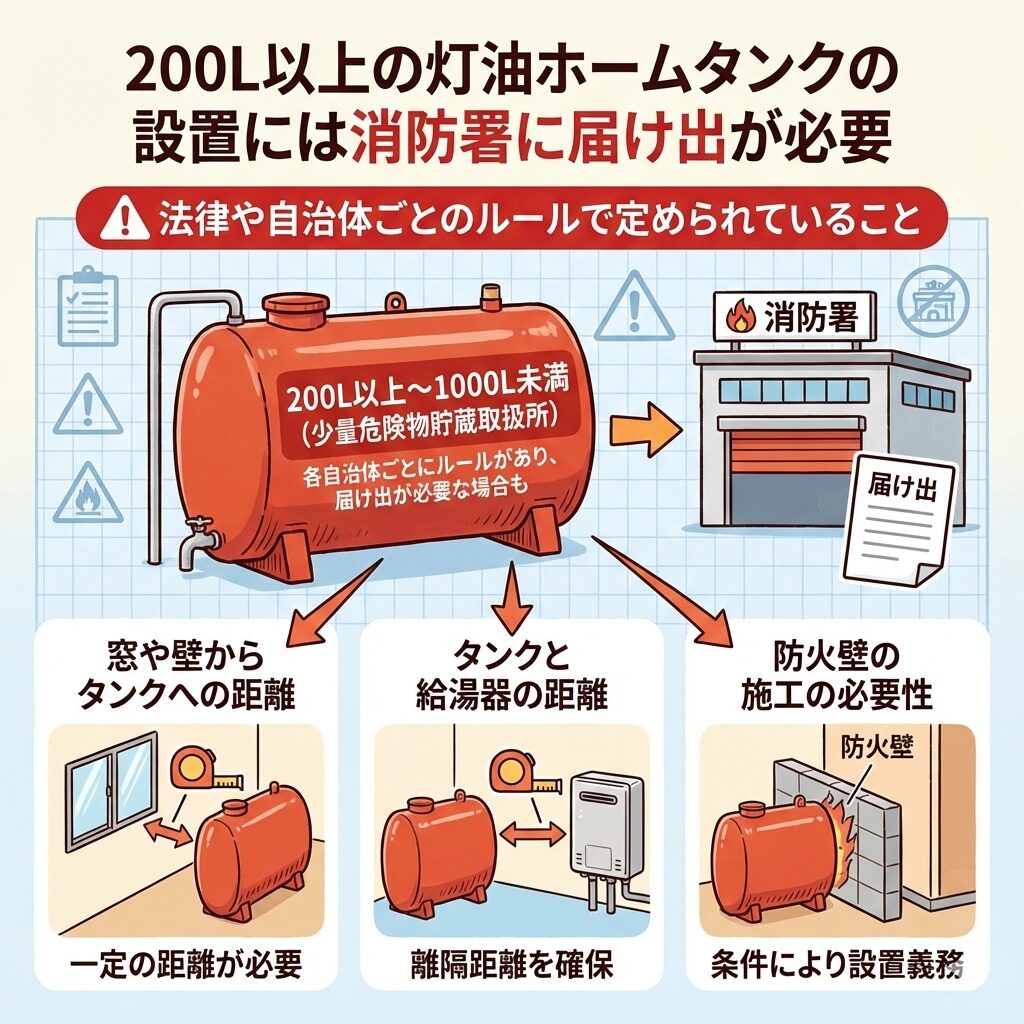 200l以上の灯油ホームタンクの設置には消防署に届け出が必要